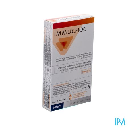 Immuchoc Comp 15 is een voedingssupplement, verkrijgbaar in uw buurtapotheek of online apotheek. Neem niet meer dan de aanbevolen dagelijkse dosis vermeld op de verpakking. Het vervangt geen gezonde levensstijl en gevarieerde en evenwichtige voeding. Vraag raad aan uw apotheker. Het product altijd buiten het bereik van kinderen houden.