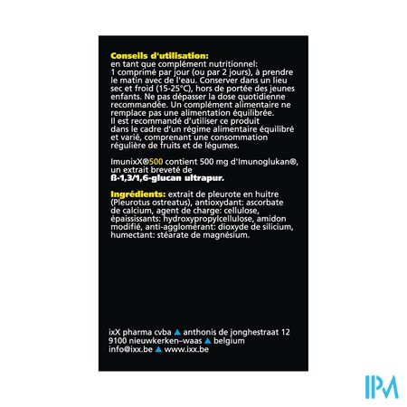 Imunixx 500 Tabl 5x 911mg is een voedingssupplement, verkrijgbaar in uw buurtapotheek of online apotheek. Neem niet meer dan de aanbevolen dagelijkse dosis vermeld op de verpakking. Het vervangt geen gezonde levensstijl en gevarieerde en evenwichtige voeding. Vraag raad aan uw apotheker. Het product altijd buiten het bereik van kinderen houden.