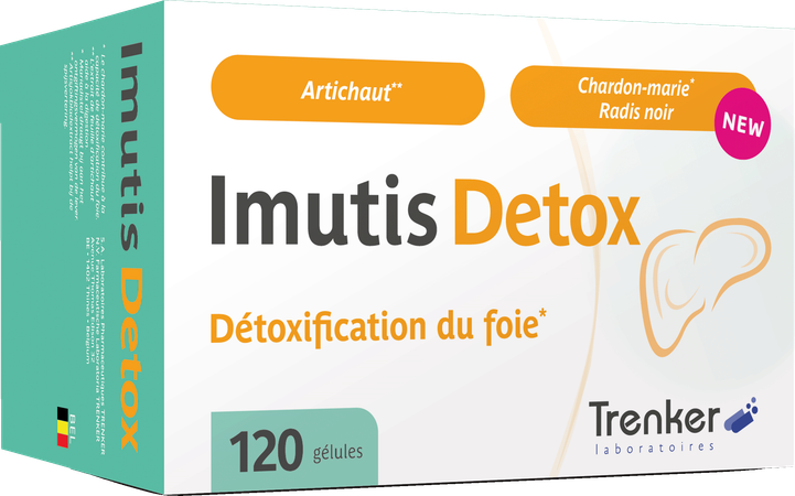Imutis Detox is een voedingssupplement dat bestaat uit hoge doses silymarine (mariadistel 1), cynarine (artisjok 2), geconcentreerde zwarte radijs (beter bekend als wilde radijs) en N-acetylcysteïne. Deze stoffen 1,2 ondersteunen op complementaire wijze de spijsvertering en ontgiften de lever.