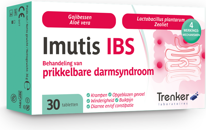 Door zijn mechanisch beschermende werking zorgt Imutis IBS voor een fysieke interactie met het darmslijmvlies. Het creëert een mucoadhesieve film die het slijmvlies beschermt tegen contact met irriterende stoffen en tegelijkertijd gevaarlijke stoffen helpt te weren door de absorptie ervan tegen te gaan. Door middel van een fysiek mechanisme helpt het darmgassen te adsorberen en toxines te verwijderen, waardoor de typische klachten van prikkelbare darmsyndroom worden verminderd. Imutis IBS helpt de darmepitheelbarrière intact te houden en het evenwicht van de darmmicrobiota te bewaren.