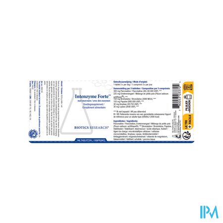 Intenzyme Forte Biotics Comp 100 is een voedingssupplement, verkrijgbaar in uw buurtapotheek of online apotheek. Neem niet meer dan de aanbevolen dagelijkse dosis vermeld op de verpakking. Het vervangt geen gezonde levensstijl en gevarieerde en evenwichtige voeding. Vraag raad aan uw apotheker. Het product altijd buiten het bereik van kinderen houden.