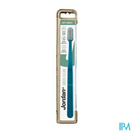 Draag jouw steentje bij aan het verminderen van de plastic soep met de Green Clean Soft tandenborstel van Jordan. De borstel en zijn verpakking zijn vervaardigd uit 90% gerecycleerde materialen. Het handvat bestaat volledig uit gerecycleerd en FDA-goedgekeurd plastic en is BPA-vrij. De zachte haren van nylon 1010 zijn 100% biologisch en afkomstig van ricinusolieplanten, een hernieuwbare bron.