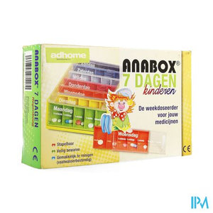 De weekdoos voor kinderen van Anabox bestaat uit 7 dagdoseerders die hun plaats vinden in een box. De dagdoseerders hebben een halfronde vorm waardoor de geneesmiddelen gemakkelijk uit te nemen zijn en er een makkelijke reiniging mogelijk is omdat er afgeronde hoeken zijn.