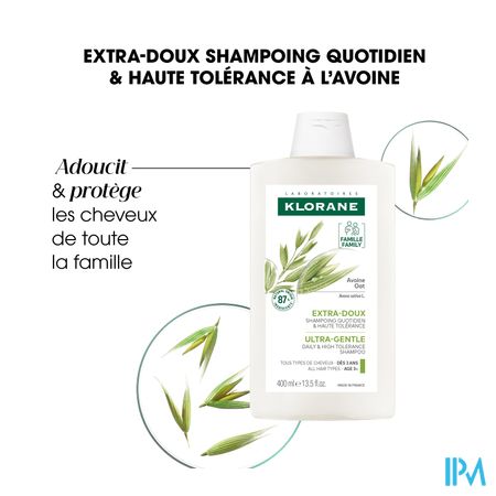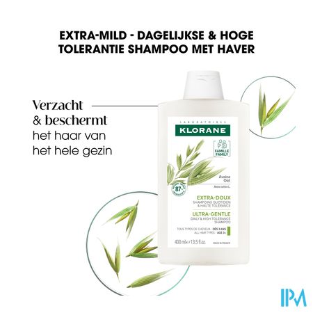 De Extra-mild dagelijkse & hoge tolerantie shampoo met Biologische medicinale Haver reinigt, verzacht en beschermt de hoofdhuid en het haar van het hele gezin, vanaf 3 jaar. De biologisch afbreekbare* formule met hoge tolerantie bevat 87% ingrediënten van natuurlijke oorsprong. Deze milde shampoo is onder dermatologisch en pediatrisch toezicht getest en respecteert het evenwicht van de gevoelige hoofdhuid van het hele gezin, vanaf 3 jaar. Haver, Avena sativa L., wordt biologisch en in een korte keten geteeld in het zuidwesten van Frankrijk. Het extract van de korrels draagt bij aan het verzachten en beschermen van het haar en de hoofdhuid. Onze shampoo biedt zo een waar bad van zachtheid en vergemakkelijkt het ontwarren. Het haar is perfect schoon, soepel en beschermd.