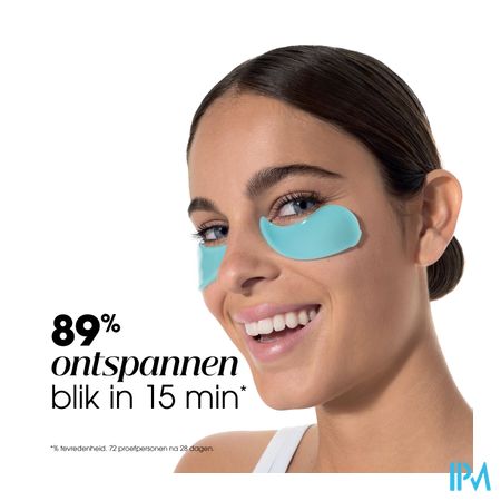 1 . Open het deksel. 2. Plaats de oogkompressen onder de ogen, beginnend met het smalste gedeelte bij de binnenste ooghoek. Laat 15 minuten intrekken. Voor een extra verkoelend effect, plaats de oogkompressen voor gebruik in de koelkast.Oogkompressen voor eenmalig gebruik.
