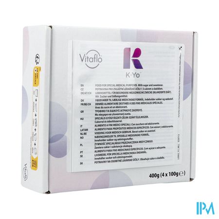 K.Yo is een kant-en-klare halfvaste voeding die qua voedingswaarde compleet is, zeer rijk aan vet en arm aan koolhydraten, met een vet/koolhydraat/eiwitverhouding van 3:1:1. Verkrijgbaar in de smaken vanille en chocolade. Met suiker en zoetstof.