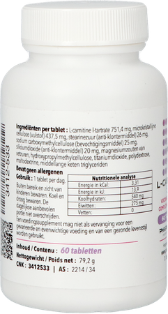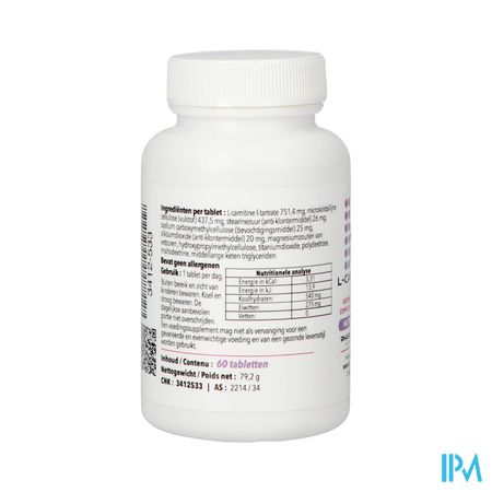 l Carnitine 500 Comp 60 Pharmanutrics is een voedingssupplement, verkrijgbaar in uw buurtapotheek of online apotheek. Neem niet meer dan de aanbevolen dagelijkse dosis vermeld op de verpakking. Het vervangt geen gezonde levensstijl en gevarieerde en evenwichtige voeding. Vraag raad aan uw apotheker. Het product altijd buiten het bereik van kinderen houden.