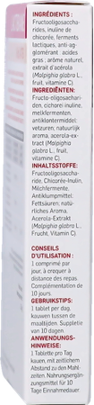 Fructo-oligosachariden, cichorei inuline, melkfermenten, antiklontermiddel: vetzuren; natuurlijk aroma, acerola-extract (Malpighia glabra L., fruit, vitamine C).