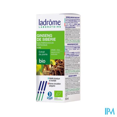Ladrome Eleuthero Senticosus/siberische Gins. 50ml is een voedingssupplement, verkrijgbaar in uw buurtapotheek of online apotheek. Neem niet meer dan de aanbevolen dagelijkse dosis vermeld op de verpakking. Het vervangt geen gezonde levensstijl en gevarieerde en evenwichtige voeding. Vraag raad aan uw apotheker. Het product altijd buiten het bereik van kinderen houden.