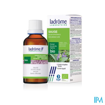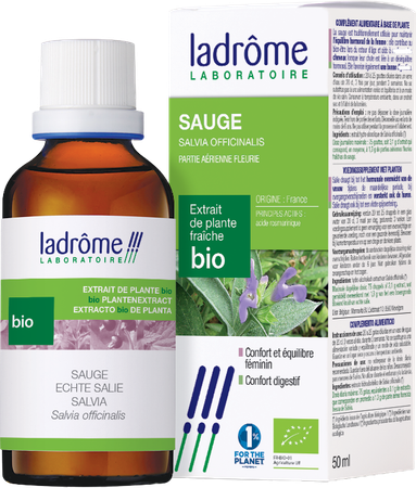 Hydro-alcoholisch extract van Salvia officinalis* of Echte salie (37,8%), gekweekt in de Drôme door een filière van Bio Solidaire, gecontroleerd door Ecocert SA. Plantendeel: bloeiende toppen. Actieve substanties: rozemarijnzuur. * Ingrediënten van gecontroleerde biologische teelt.