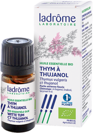 Tijm-etherische olie met thujanol is erg interessant omdat het veiliger is dan tijmolie, die voornamelijk fenolen als thymol en carvacrol bevat, maar het heeft een even sterke werking
