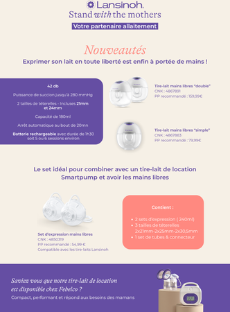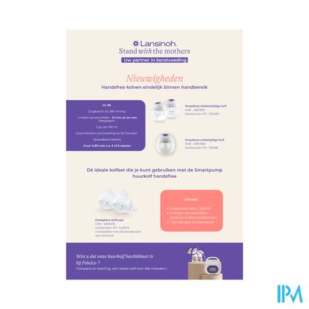 Dubbele handsfree afkolfset, compatibel met Lansinoh-borstkolven Zodat moeders vrij kunnen bewegen of rusten tijdens het kolven! Net als een klassieke afkolfset wordt deze aangesloten op de borstkolf. De ergonomische en lichtgewicht cups kunnen worden geplaatst in de beha. Door het transparante ontwerp kan de borst goed worden gepositioneerd. Met elke cup kunt u maximaal 240 ml afkolven.