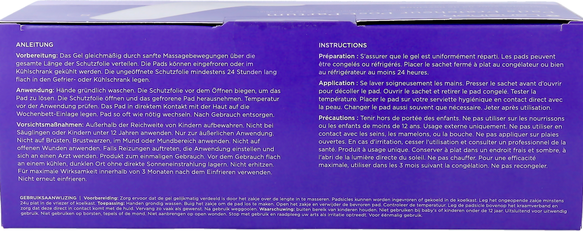 Plaats de padsicles bovenop het kraamverband zodat het rechtstreeks in contact komt met het perineum