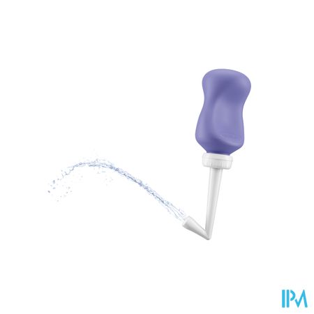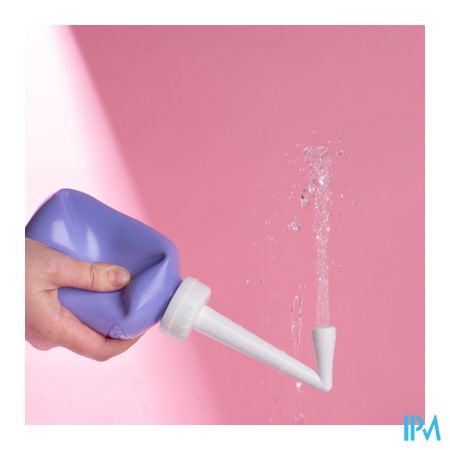 Het flesje kan ondersteboven gebruikt worden om water tussen de benen te spuiten, met de spuit richting het perineum. Een zachte waterstraal komt er uit om het perineum schoon te houden zonder pijn.