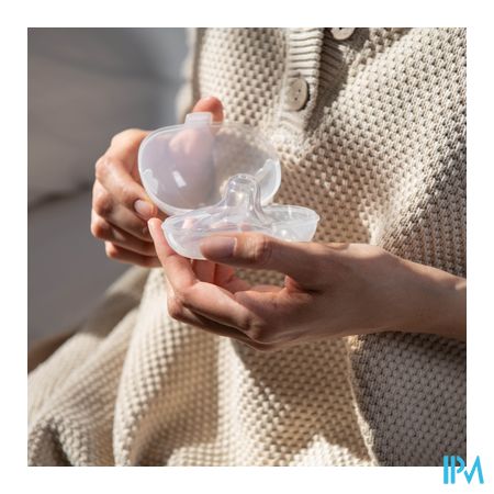 Inclusief 2 x Afmeting 1 (diameter tepel tot 20 mm) tepelhoeden en beschermdoosje voor hygiënisch opbergen.