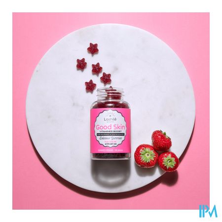Good Skin zijn met vitaminen verrijkte gummies die speciaal zijn ontwikkeld om de huid te laten stralen. Ze zijn veganistisch, zonder kunstmatige kleurstoffen en gemaakt in Frankrijk. Ze bevatten heerlijke natuurlijke smaakstoffen voor een "Strawberry Candy"-smaak waar u dol op zult zijn!