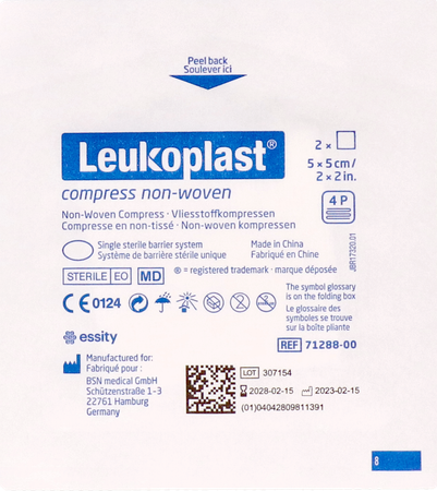 Leukoplast Non-woven kompressen zijn absorberende kompressen voor wondreiniging, wondbedekking, huidreiniging en andere toepassingen. Ze zijn huidvriendelijk, gemaakt van non-woven materiaal, ademend en zacht en verkleven minder in de wonde.