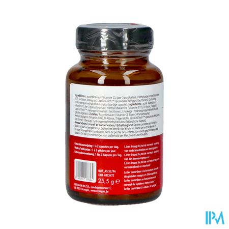 Vitamine C, Fosfolipiden (van niet-GMO zonnebloemolie en RSPO-gecertificeerde duurzame Palmolie), ijzer (III) pyrofosfaat, D-Ribose, vitamine B12 (methylcobalamine).