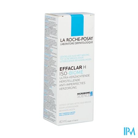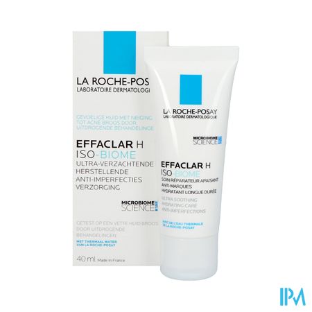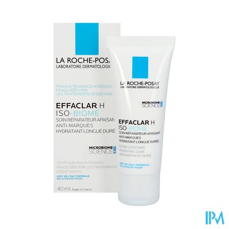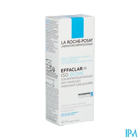 EFFACLAR H ISO-BIOME Crème helpt de huid die kwetsbaar is geworden door uitdrogende behandelingen tegen acne te herstellen.