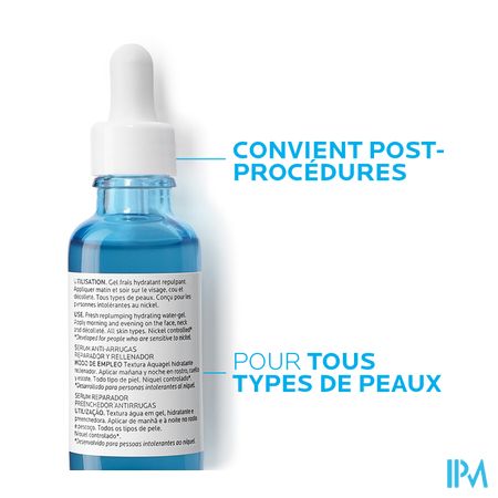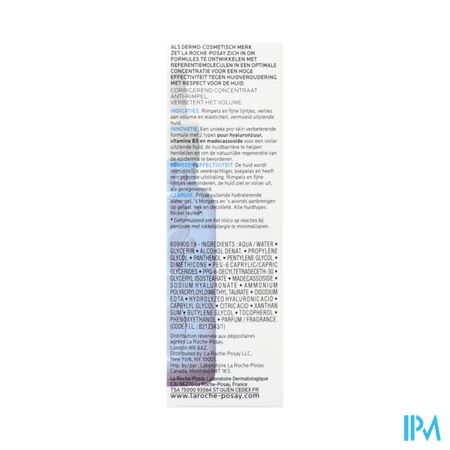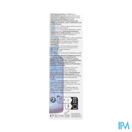 Hyaluronzuur, dé anti-aging molecule bij uitstek, wordt door dermatologen gebruikt voor esthetische behandelingen tegen rimpels en een minder "volle" huid. La Roche-Posay gebruikt gefragmenteerd hyaluronzuur en hyaluronzuur met hoog moleculair gewicht, om de huid zowel aan het oppervlak als diepgaand te vullen.