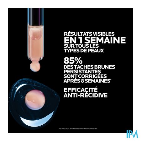 • Serum om de meest hardnekkige pigmentvlekken te helpen vermideren. Zeer werkzaam, helpt terugkeer voorkomen