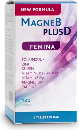 MAGNEBPLUSD® FEMINA is perfect gedoseerd en aangepast aan de fysiologische behoeftes van het vrouwelijk lichaam. De gebruikte chemische vorm van mineralen zijn in hoge mate biologisch beschikbaar en zeer goed verdraagbaar. Dit geldt vooral voor de magnesiumvorm. Seleen draagt bij tot de normale werking van de schildklier en, met zink, draagt hij bij tot de instandhouding van normale haar en nagels. Magnesium, de B-vitaminen zijn essentieel voor een groot aantal fysiologische mechanismen, zoals de regulering van de hormonale B6 activiteit. De vitamine B2 draagt op haar beurt bij tot het normale metabolisme van ijzer en tot de instandhouding van een normale huid.