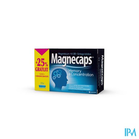 Magnecaps Memory&concentration Caps 35 Promopack is een voedingssupplement, verkrijgbaar in uw buurtapotheek of online apotheek. Neem niet meer dan de aanbevolen dagelijkse dosis vermeld op de verpakking. Het vervangt geen gezonde levensstijl en gevarieerde en evenwichtige voeding. Vraag raad aan uw apotheker. Het product altijd buiten het bereik van kinderen houden.