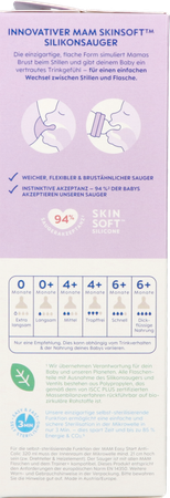 - MAM SkinSoftTM Silicone: snel geaccepteerd door baby's – voor een vertrouwd gevoel