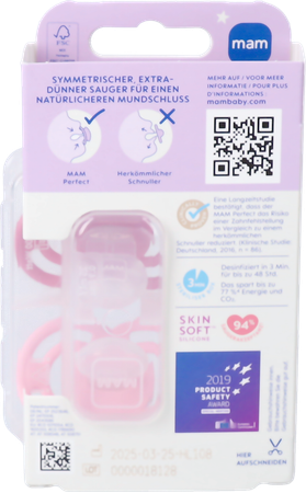 - MAM SkinSoftTM Silicone: snel geaccepteerd door baby's – voor een vertrouwd gevoel