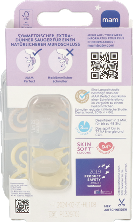 - MAM SkinSoftTM Silicone: snel geaccepteerd door baby's – voor een vertrouwd gevoel