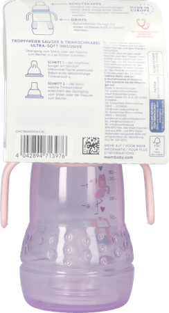 De MAM Trainer+ is ideaal voor zelfstandig drinken – lekvrij en makkelijk vast te houden.
