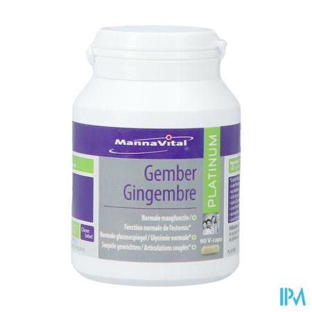 Mannavital Gember Platinum V-caps 90 is een voedingssupplement, verkrijgbaar in uw buurtapotheek of online apotheek. Neem niet meer dan de aanbevolen dagelijkse dosis vermeld op de verpakking. Het vervangt geen gezonde levensstijl en gevarieerde en evenwichtige voeding. Vraag raad aan uw apotheker. Het product altijd buiten het bereik van kinderen houden.