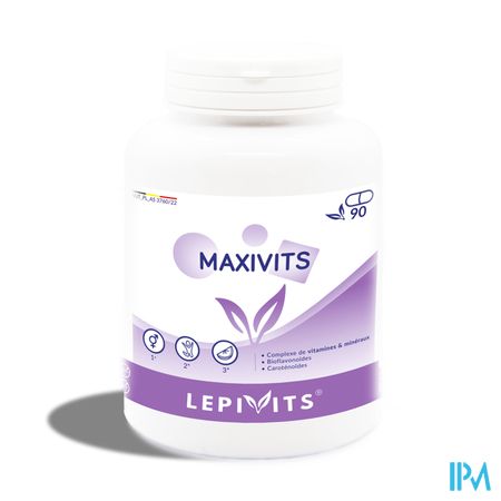 Lepivits Maxivits Pot Caps 90 is een voedingssupplement, verkrijgbaar in uw buurtapotheek of online apotheek. Neem niet meer dan de aanbevolen dagelijkse dosis vermeld op de verpakking. Het vervangt geen gezonde levensstijl en gevarieerde en evenwichtige voeding. Vraag raad aan uw apotheker. Het product altijd buiten het bereik van kinderen houden.