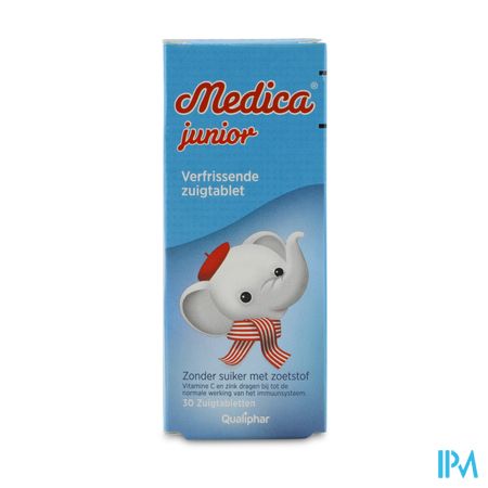 Medica Junior 30 suikervrije zuigtabletten is een voedingssupplement, verkrijgbaar in uw buurtapotheek of online apotheek. Neem niet meer dan de aanbevolen dagelijkse dosis vermeld op de verpakking. Het vervangt geen gezonde levensstijl en gevarieerde en evenwichtige voeding. Vraag raad aan uw apotheker. Het product altijd buiten het bereik van kinderen houden.