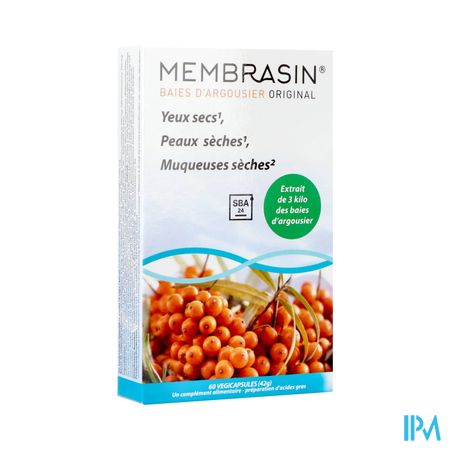 Membrasin© bevat de zuivere olie uit het vruchtvlees en de pit van de duindoornbes. Deze olie bevat vitamine A, onverzadigde vetzuren omega-3, -6 en -9 en omega-7 vetzuren. Helpt bij droge ogen, droge huid en droge slijmvliezen. De kwaliteit is wetenschappelijk onderzocht.