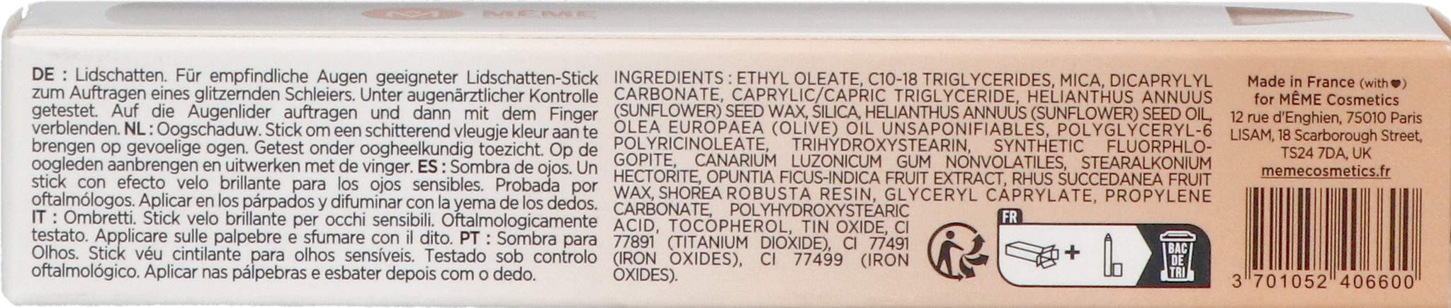 Breng de oogschaduw met de applicatorstick direct op de huid aan. De romige, moduleerbare formule laat zich gemakkelijk mengen met de vinger of met een kwastje.