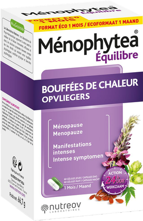 Ménophytea® Opvliegers, het resultaat van onderzoek door Nutreov Laboratories, helpt de ongemakken van de menopauze te verlichten dankzij een innovatieve formule geïnspireerd door de natuur.