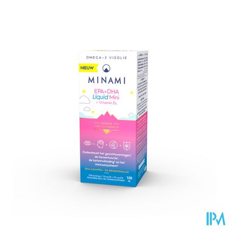Minami Epa+dha Liquid Mini + Vit D3 Fl 100ml is een voedingssupplement, verkrijgbaar in uw buurtapotheek of online apotheek. Neem niet meer dan de aanbevolen dagelijkse dosis vermeld op de verpakking. Het vervangt geen gezonde levensstijl en gevarieerde en evenwichtige voeding. Vraag raad aan uw apotheker. Het product altijd buiten het bereik van kinderen houden.
