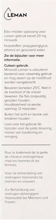 Minoxidil Leman is bestemd voor uitwendig gebruik. U mag het alleen op de hoofdhuid aanbrengen