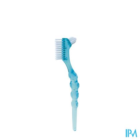 Prothese borstel voor het reinigen van je kunstgebit met ergonomisch gevormde handgreep.