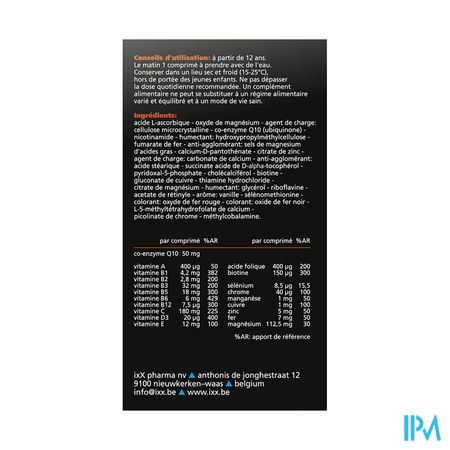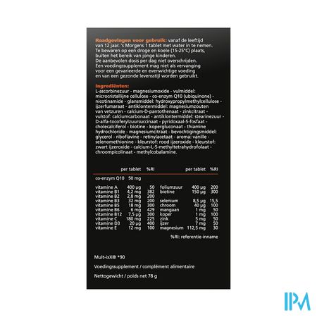 Mult-ixX bevat 12 vitamines, 7 mineralen en 50 mg co-enzym Q10.