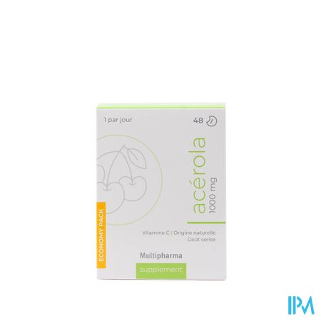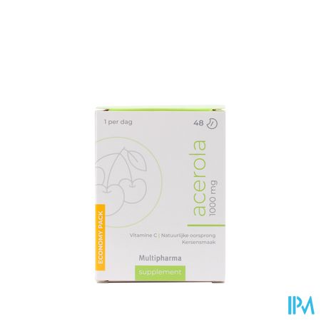 Multipharma Acerola 1000mg Kauwtabletten 48 is een voedingssupplement, verkrijgbaar in uw buurtapotheek of online apotheek. Neem niet meer dan de aanbevolen dagelijkse dosis vermeld op de verpakking. Het vervangt geen gezonde levensstijl en gevarieerde en evenwichtige voeding. Vraag raad aan uw apotheker. Het product altijd buiten het bereik van kinderen houden.