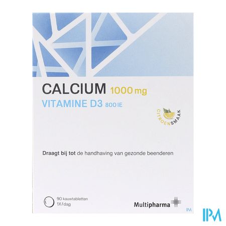 Multipharma Calcium D3 1000mg/800ui Kauwtabl 90 is een voedingssupplement, verkrijgbaar in uw buurtapotheek of online apotheek. Neem niet meer dan de aanbevolen dagelijkse dosis vermeld op de verpakking. Het vervangt geen gezonde levensstijl en gevarieerde en evenwichtige voeding. Vraag raad aan uw apotheker. Het product altijd buiten het bereik van kinderen houden.