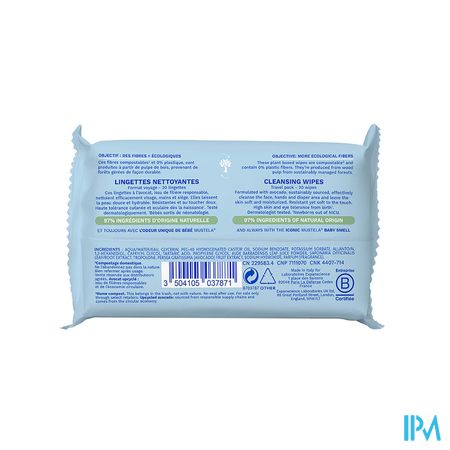 Mustela reinigingsdoekjes, met biologische avocado, voor handen, zitvlak en lichaam. Deze doekjes zijn gemaakt van plantaardige, plasticvrije en composteerbare(1) vezels en hebben een subtiele geur en zijn ultrazacht. Zij reinigen de huid op milde wijze en geven een aangenaam gevoel van frisheid en zorgen voor een zachte en gehydrateerde huid bij pasgeborenen(2), baby's en kinderen. Ze maken een snelle reiniging mogelijk, zonder dat je hoeft af te spoelen. Ideaal voor op reis.