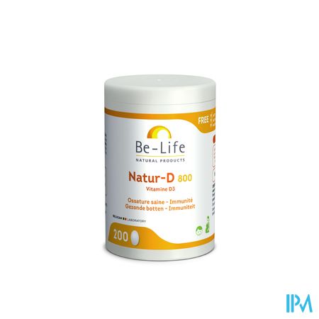 Natur D 800 Be-life Caps 200 is een voedingssupplement, verkrijgbaar in uw buurtapotheek of online apotheek. Neem niet meer dan de aanbevolen dagelijkse dosis vermeld op de verpakking. Het vervangt geen gezonde levensstijl en gevarieerde en evenwichtige voeding. Vraag raad aan uw apotheker. Het product altijd buiten het bereik van kinderen houden.