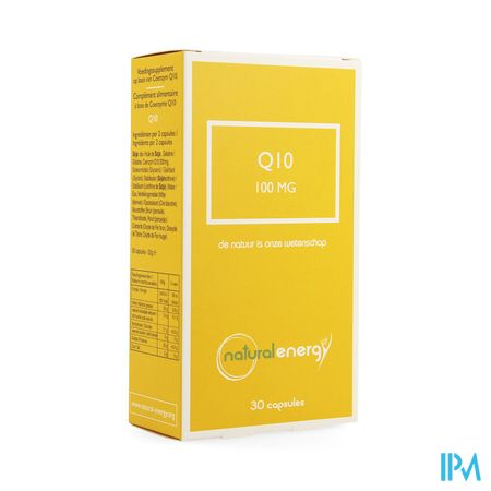 Q10 Caps 30x100mg Natural Energy is een voedingssupplement, verkrijgbaar in uw buurtapotheek of online apotheek. Neem niet meer dan de aanbevolen dagelijkse dosis vermeld op de verpakking. Het vervangt geen gezonde levensstijl en gevarieerde en evenwichtige voeding. Vraag raad aan uw apotheker. Het product altijd buiten het bereik van kinderen houden.