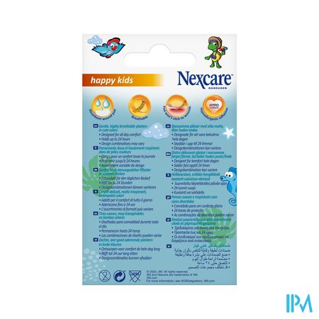 Als uw kinderen hun knie schaven of in hun vinger snijden, tovert u met Nexcare™ Happy Kids een lach op hun gezicht. Onze pleisters met leuke figuurtjes in heldere en aantrekkelijke ontwerpen leiden hen af terwijl u hun tranen droogt of de wond schoonmaakt. U kunt kiezen uit verschillende thema's. Zodra het pakje leeg is, kunnen uw kinderen plezier beleven aan de kleurplaat die erin zit en hun favoriete figuren inkleuren. Deze flexibele pleisters beschermen ontvellingen of schaafwonden terwijl uw kinderen weer in bomen klimmen of tikkertje spelen. Het ademende materiaal is zacht voor de huid en kan gemakkelijk worden verwijderd. Het wondkussen absorbeert wondvocht maar plakt niet aan de snij‑ of schaafwond, zodat die snel en beschermd kan genezen.