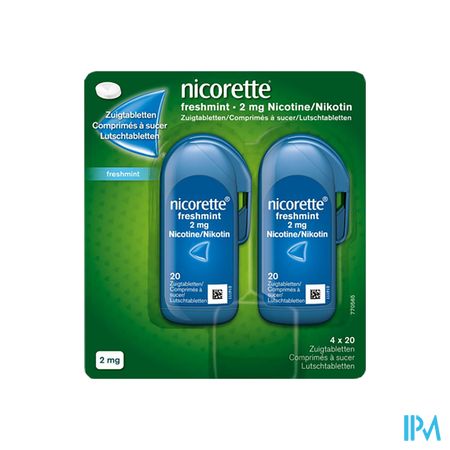 - Nicorette® Freshmint Zuigtabletten zijn suikervrij en helpen u om te stoppen met roken. Geschikt voor personen die 20 sigaretten of meer per dag roken. Voor minder afhankelijke rokers worden 2 mg zuigtabletten aangeraden.