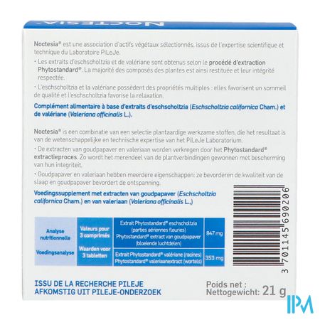 Noctesia® is een combinatie van een selectie plantaardige werkzame stoffen, die het resultaat is van de wetenschappelijke en technische expertise van het PiLeJe Laboratorium.