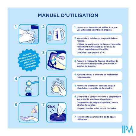 Important: suivez toujours le mode d'emploi figurant sur l'emballage. Une préparation et/ou une conservation incorrectes présentent des risques pour la santé de votre bébé.